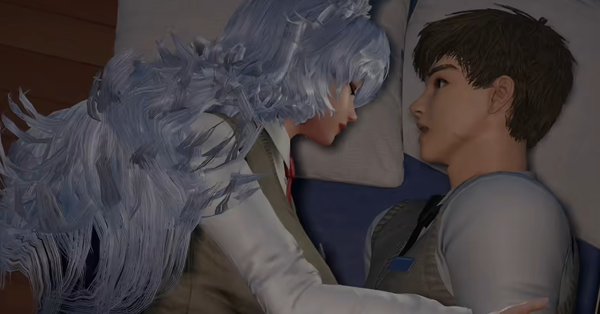 芙蕾雅觉得男主讨厌自己于是放弃继续追逐男主独自伤心,男主买了饮料来安慰芙蕾雅