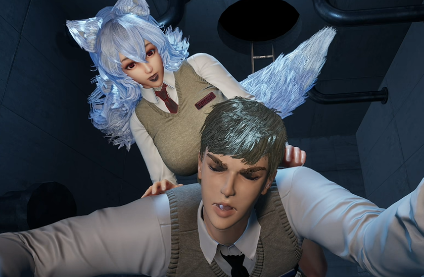 触发第二个结局CG,被芙蕾雅发现,从窗户跳下来将男主扑倒