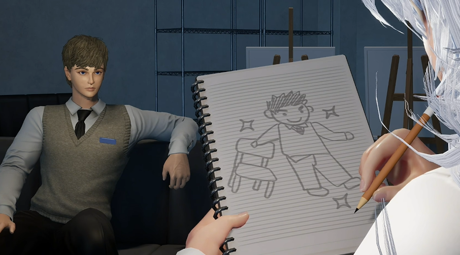 打开了美术室的秘密通道,嘈杂的音乐吸引来了芙蕾雅,男主被迫当了芙蕾雅的模特