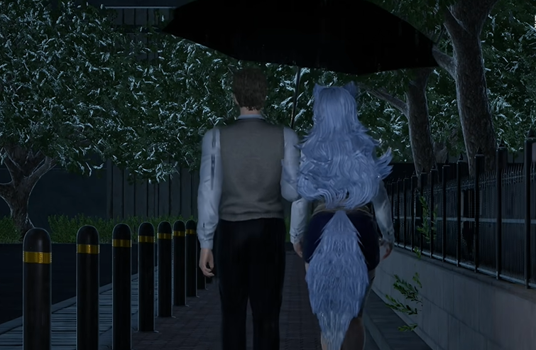 男主彻底接受了芙蕾雅,这时外面下起了雨,和芙蕾雅一起打伞回家