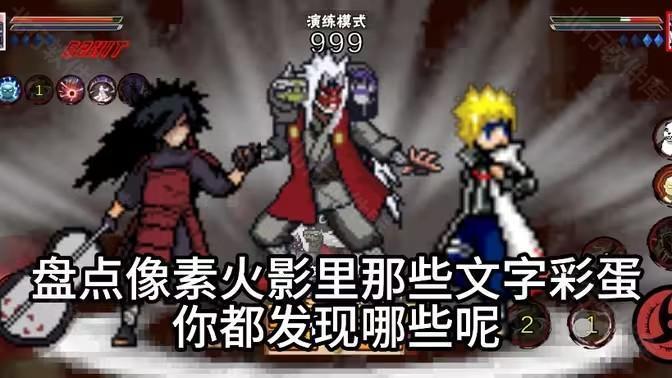 像素火影最新版中添加了各种角色与角色之间的文字彩蛋,当特定两个角色在战场上碰见,并且做出特定行为时就会触发文字彩蛋,角色会说出动漫中对应场景下的台词。下面来看看现版本都有哪些文字彩蛋吧。