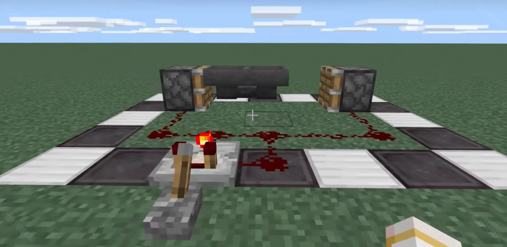 2、物品复制机如下图所示,大家对着图片做就行了。注意,漏斗必须口对口放置,并且比较器保持打开(点一下就行)