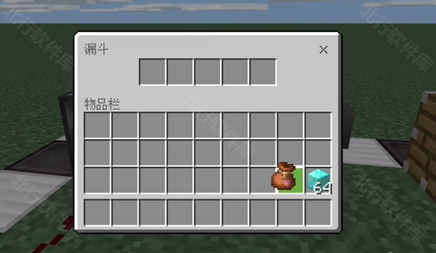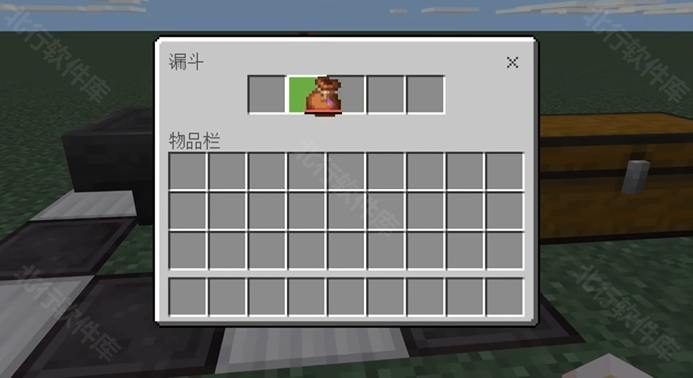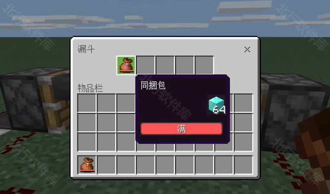 3、用同捆包储存你需要复制的物品,并放进漏斗。开启拉杆,让活塞推动漏斗