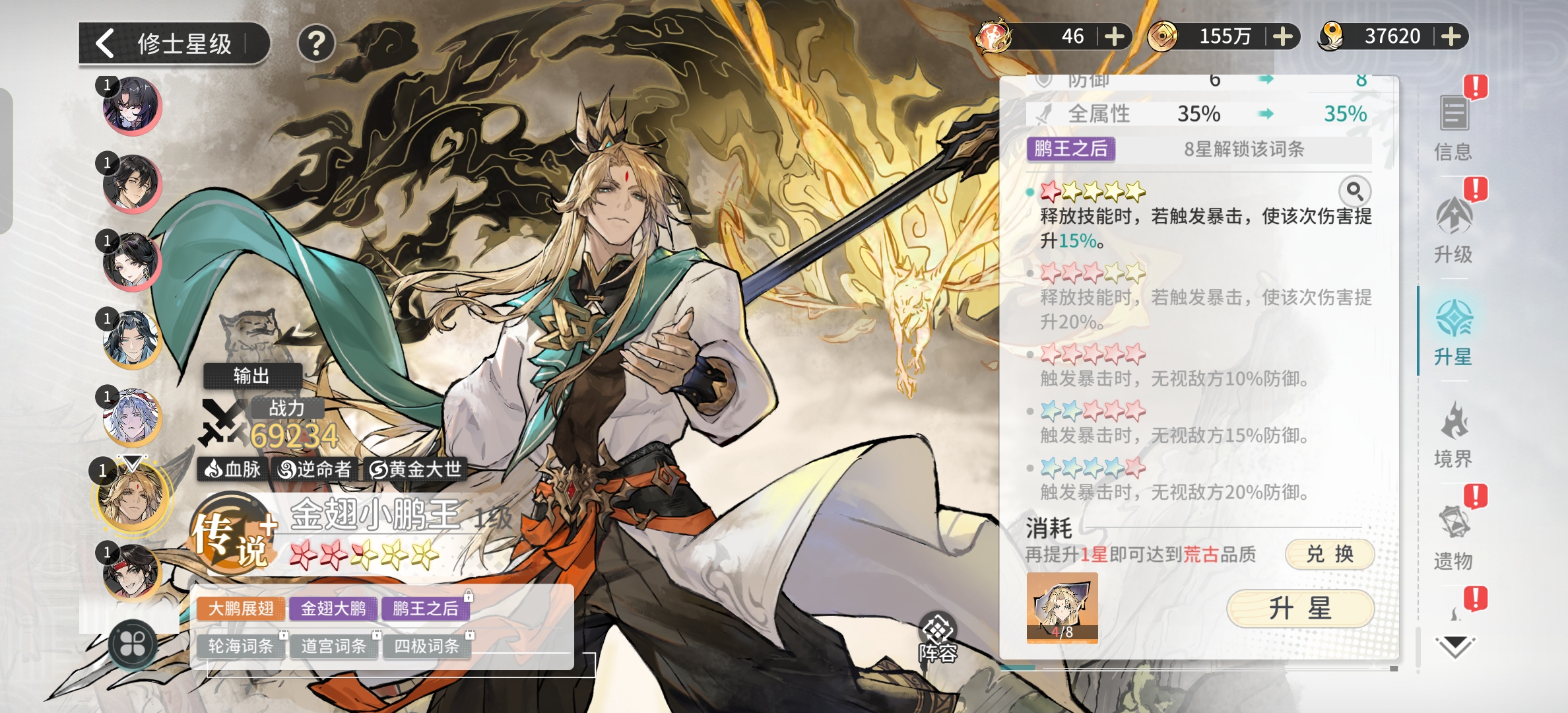 平民优先培养金翅大鹏不但可以加暴击并且是全体攻击,伤害拉满。暴力暴击,每个角色都十分的暴力。