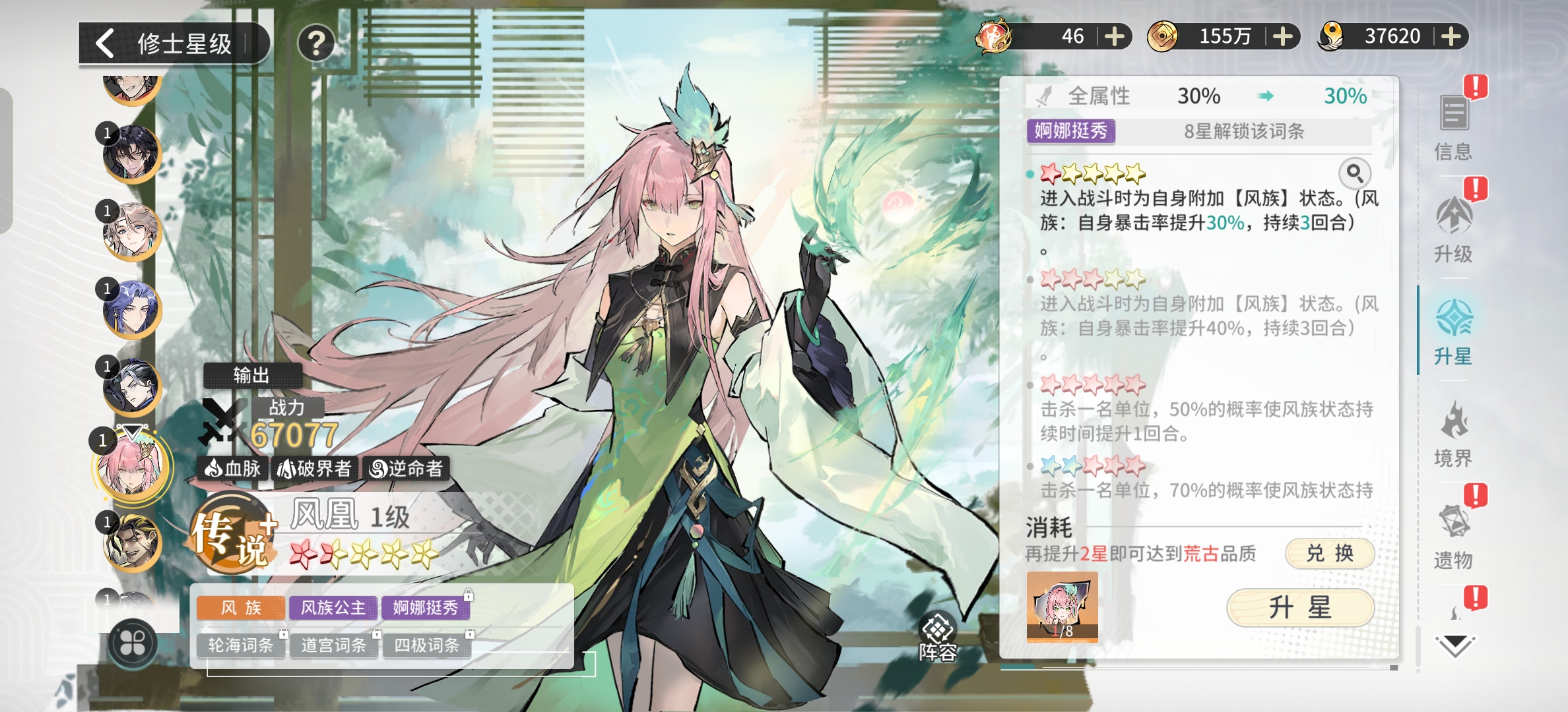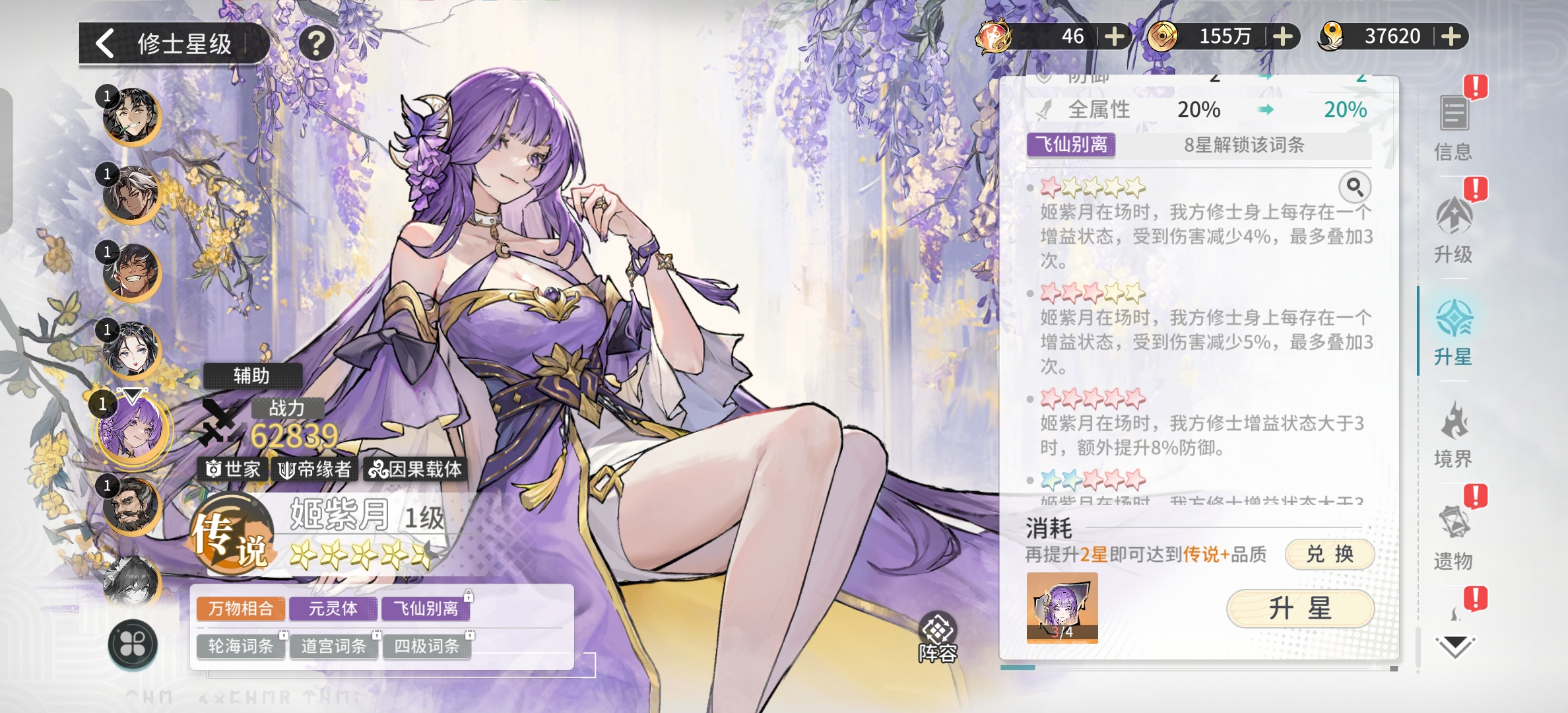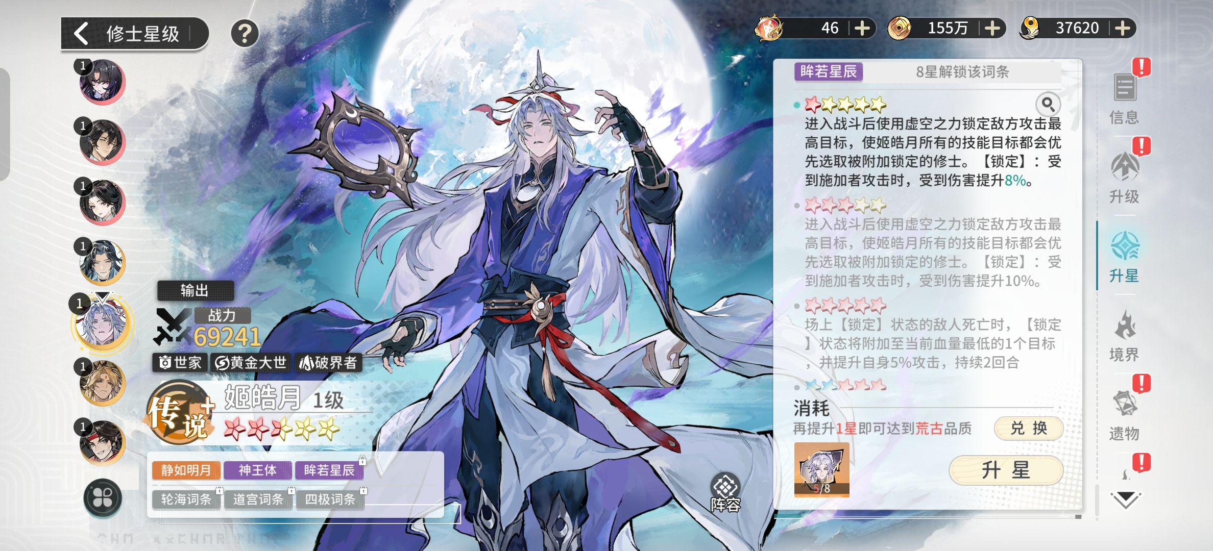 世家主打的就是一个各种增益,减益。三个强度最高的角色居然只有一个输出,剩下的两个全是辅助,这和血脉简直就是两个版本。所以说我们的主要培养就是姬皓月,然后就是伊轻舞姬紫日两个辅助可以保证全体角色的存活率。