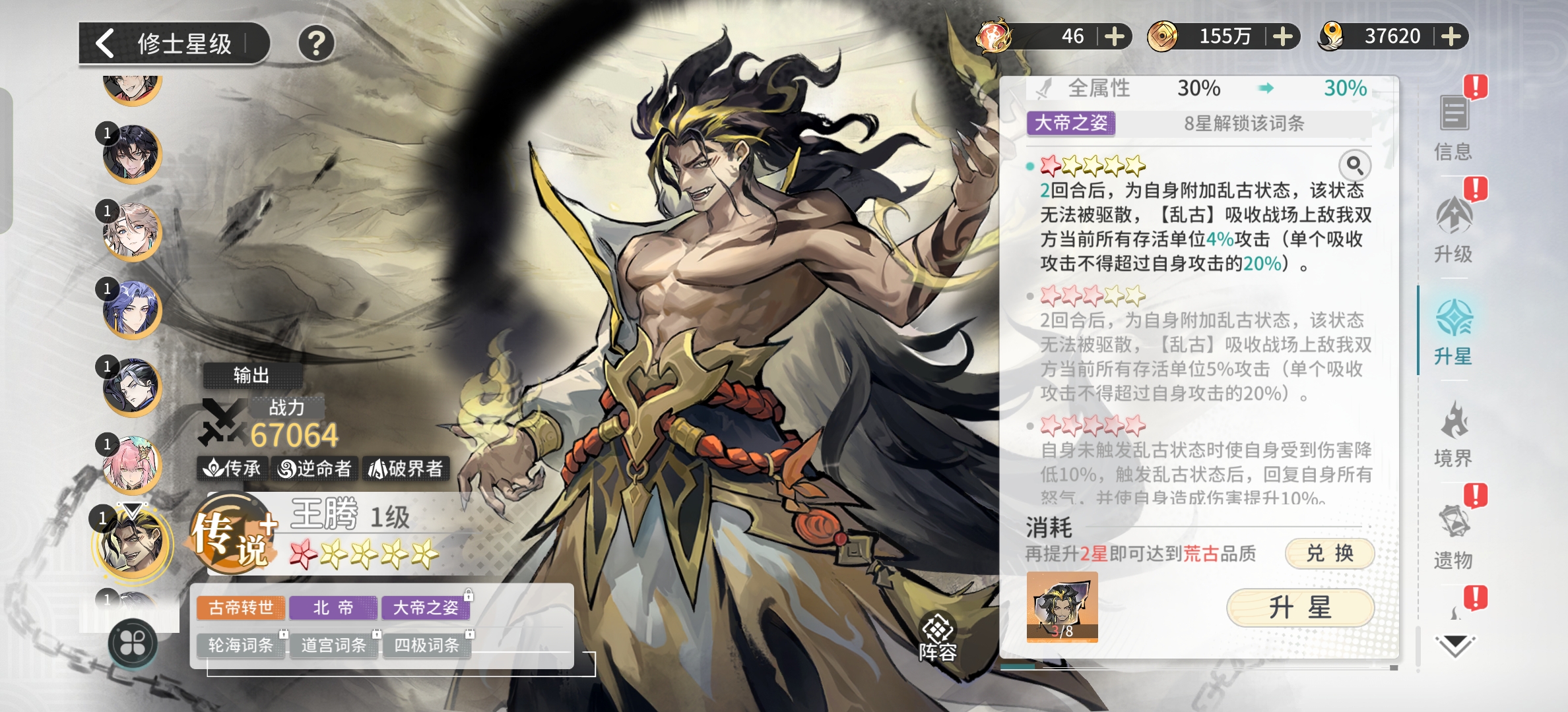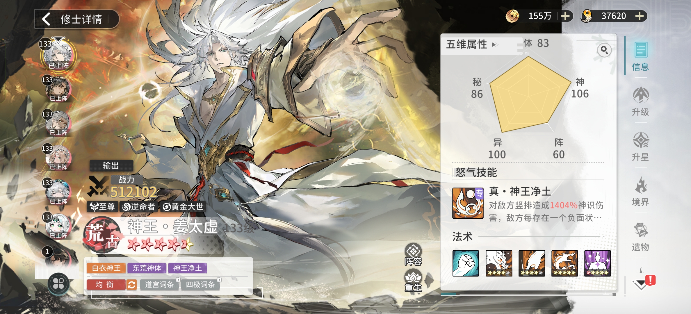 至尊没什么好说的,现在就一个角色。还是要靠充值来获取的,但是强度确实可以。现在版本只要是充值的,每个人都有一个姜太虚。