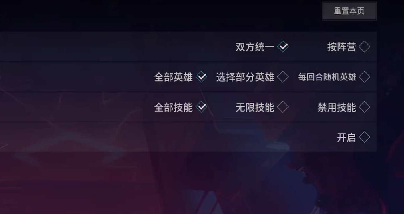 3、在房间设置中找到【英雄技能】,把该栏目下的【无限技能】勾上