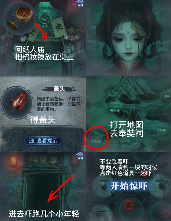 4、地图回纸人庙,将【梳妆镜】放在桌上触发畿娘子得到【盖头】