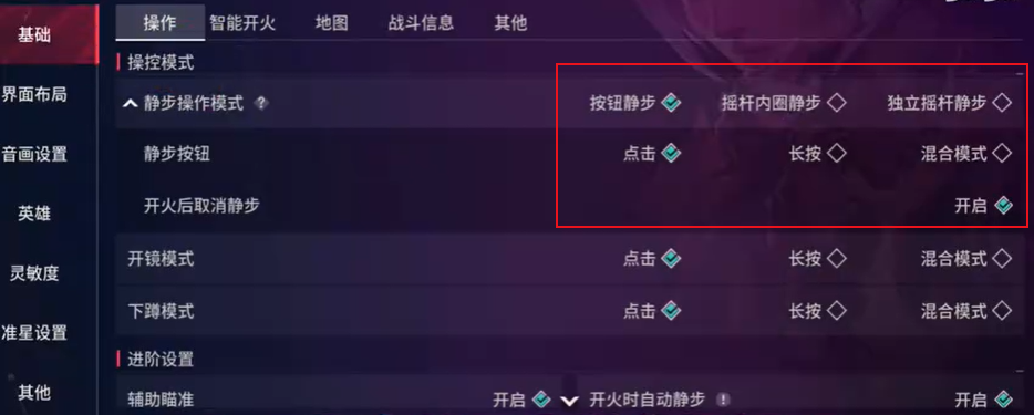 这样在作战时我们直接使用移动遥杆向内拉就可以直接静步了