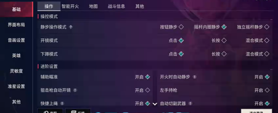 1、首先我们进入基础操作设置,如果你之前从来没有接触过无畏契约手游和类似的游戏,那么建议