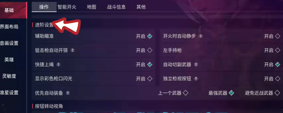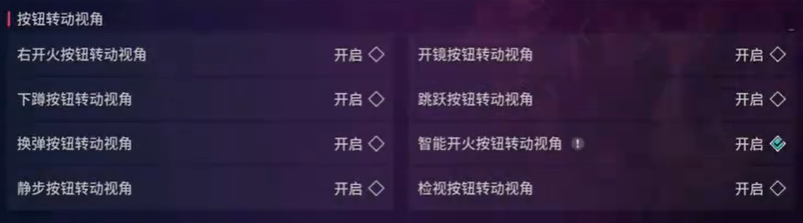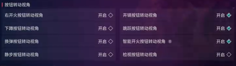 2、如果你之前经常玩其他枪战游戏,可以开启开镜按钮转动视角、跳跃按钮转动视角、智能开火按钮转动视角
