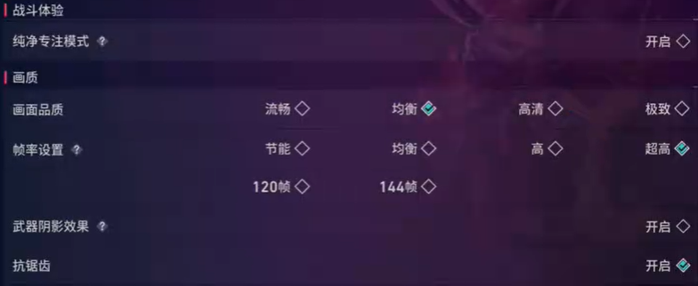 1、帧率推荐选择超高,如果能开120帧、144帧更好