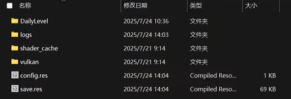 存档文件打开后如图所示,其中核心文件是save.res、config.res和DailyLevel,当然你直接全部替换或保存也行