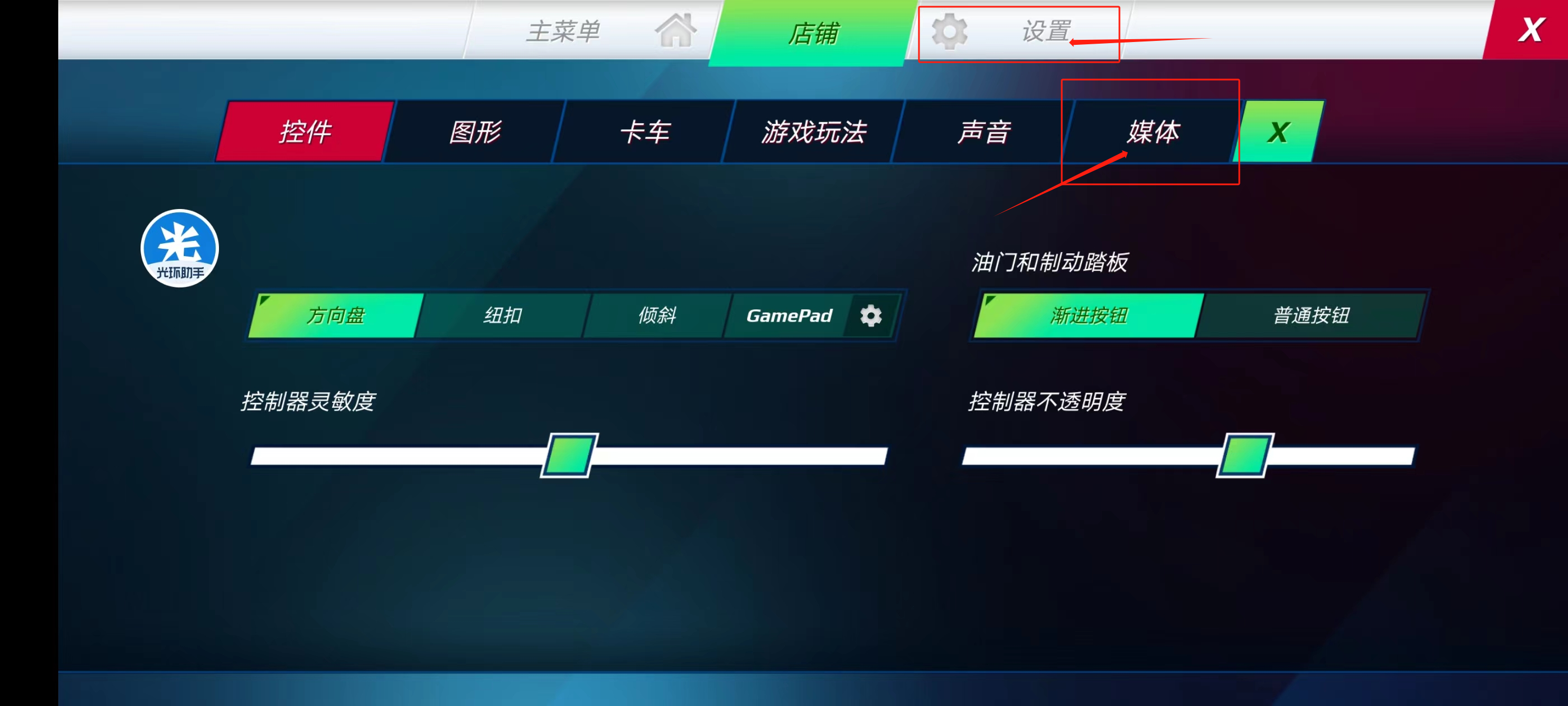 2、点击设置选项,选择媒体功能