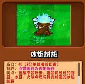 特点:自身不会攻击,但会将经过的豌豆、冰豆、火球点燃成具有减速的冰焰豌豆