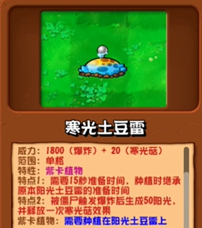 ①需要15秒准备时间,种植时继承原本阳光土豆雷的准备时间
