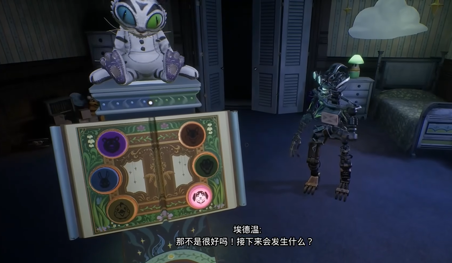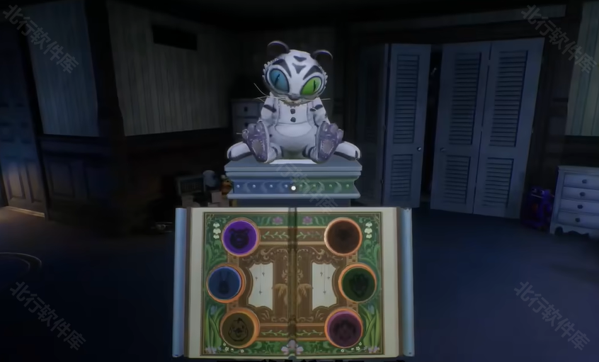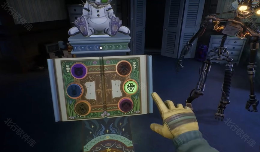 6、之后会触发剧情,我们要根据对话提示来点击书架上正确的动物图标,顺序依次是小狗→鳄鱼→小熊→狐狸。需要按照正确顺序点击,否则玩家就会被模仿者杀害