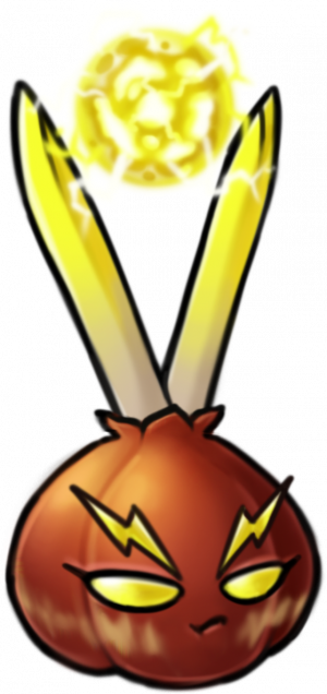 特点:电流会对目标附近的至多5个僵尸造成1/3倍伤害的溅射。若未攻击且索敌范围内有正在攻击的闪电洋葱,会为其充能并使本次攻击伤害增加1.5倍