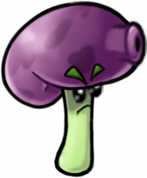 特点:拥有大喷菇的特点,如果僵尸不在4格射程内,则改为发射两发孢子