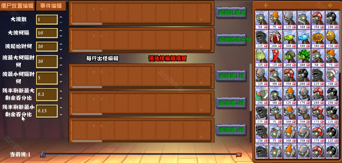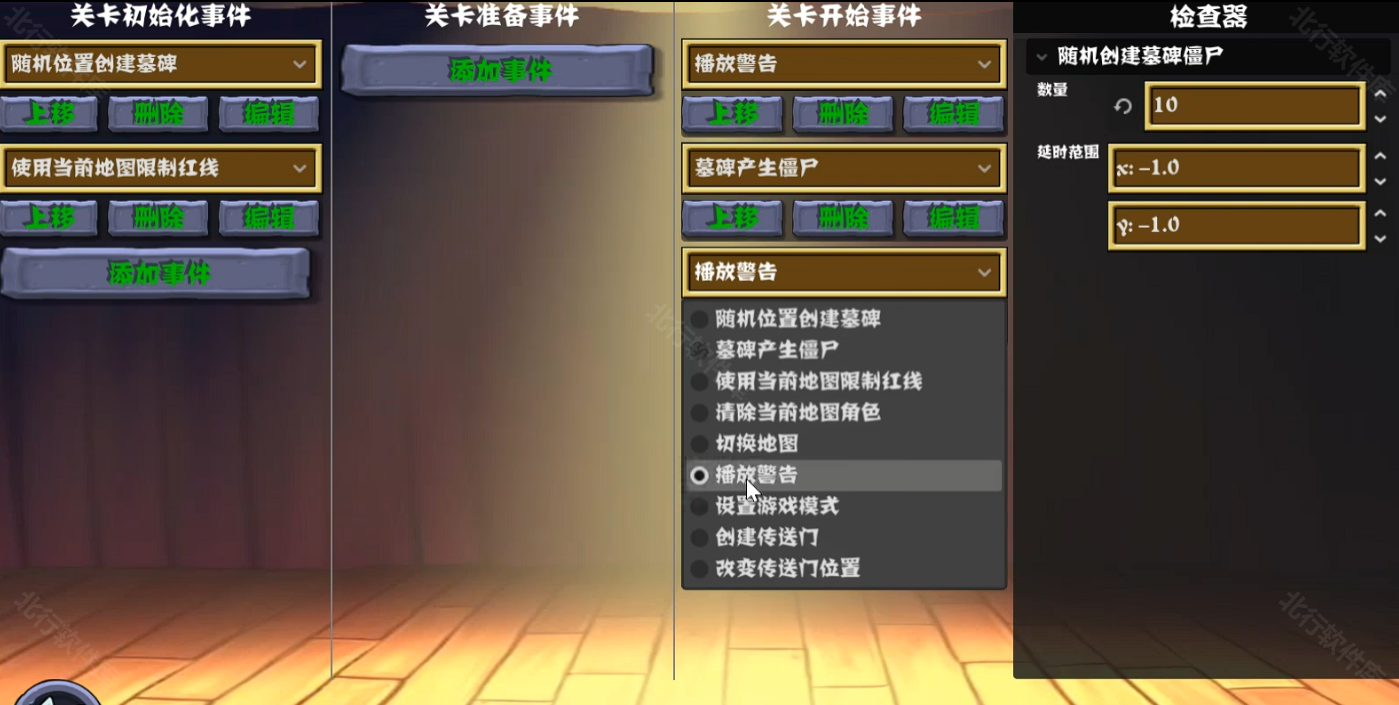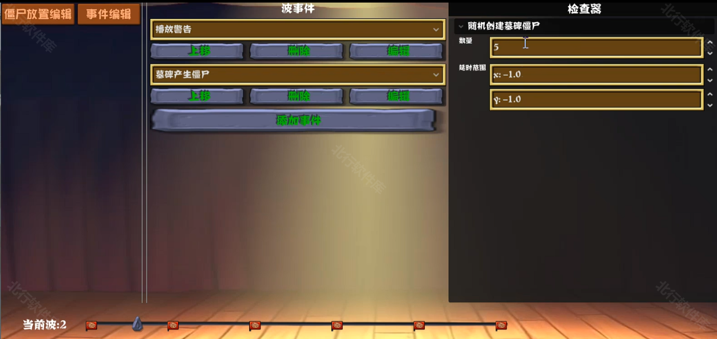 和编辑关卡事件差不多,可以更直观的编辑每波刷新时的事件