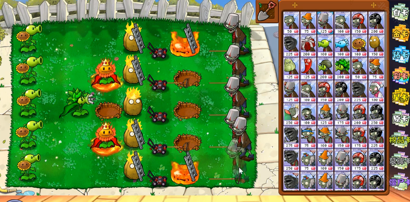 可以手动编辑当前地图,能够提前放置植物、推车、钉耙、僵尸等