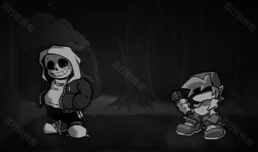 在地底遇到了Sans,因为Pico之前的着装打扮与Sans的连帽衫打扮雷同,导致BF误以为Sans是Pico从而想去报仇,于是剧情以BF攻击Sans展开。