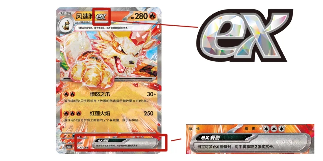 V/GX/VMAX/EX:高伤害但风险大,被击败时对手可多拿奖赏卡(如VMAX送3张)。