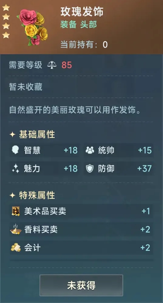 香料、会计、社交各加 2,通用性强,仅略逊于星光商城的天鹅绒皇冠。(政商的宝箱获得)