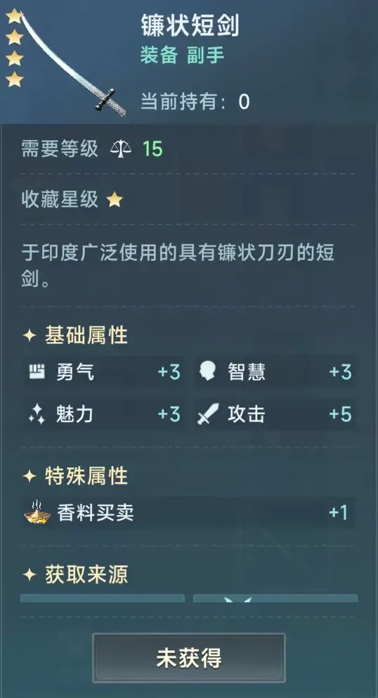 过渡装备,4 星无收益,不推荐升星。(开罗对岸冒险获得)