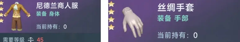 推荐:尼德兰商人服(4 星)+ 丝绸手套(可升星,视资源而定)