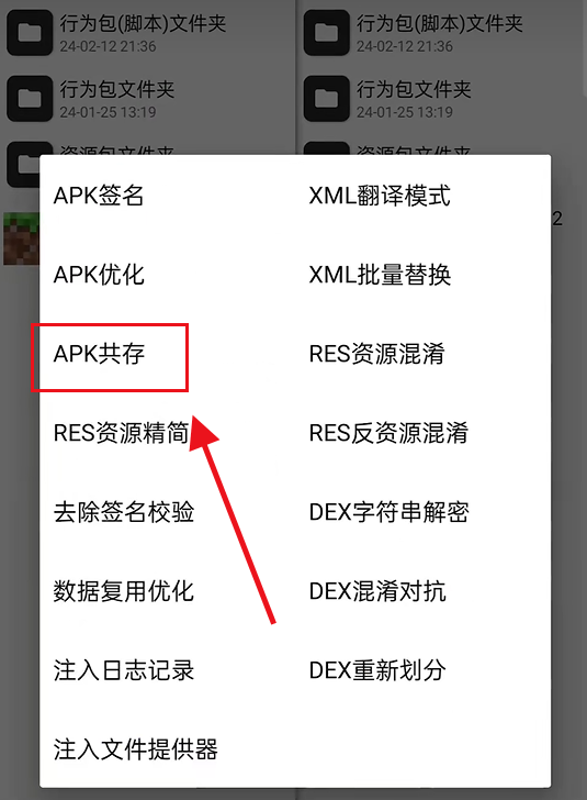 3、在新窗口中选择“APK共存”