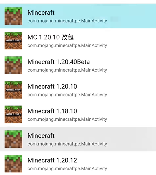 5、等待安装完毕后,就会发现手机上多了MC的游戏图标,但名字相同难以区分