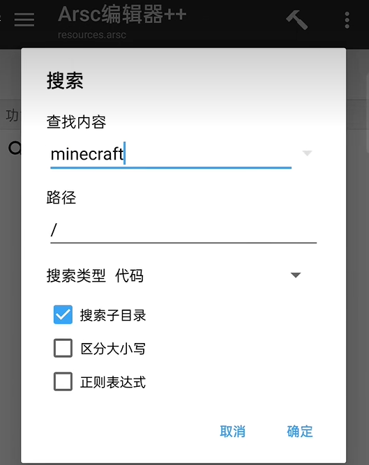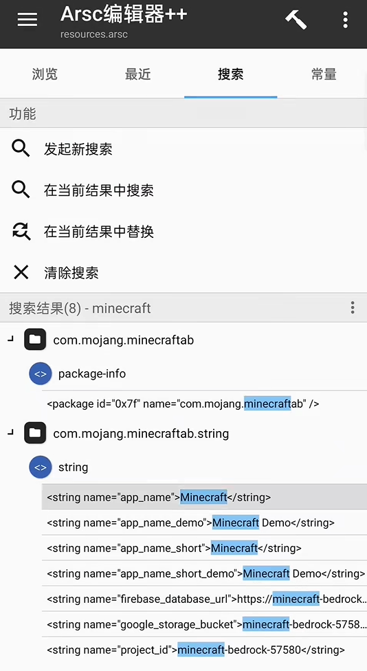 8、编辑器中使用搜索功能,查找内容“minecraft”