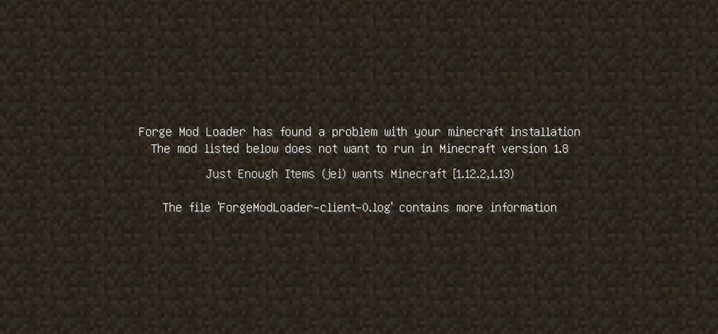 1、如下图所示,例如我安装了个1.12版本的JE,现在打开1.8版本就会弹出解析错误,提示mod不兼容