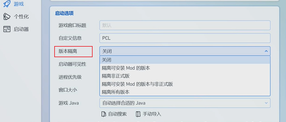 2、建议选择“隔离可安装mod的版本与非正式版”,它可以兼顾隔离mod以及避免某些神奇的特性