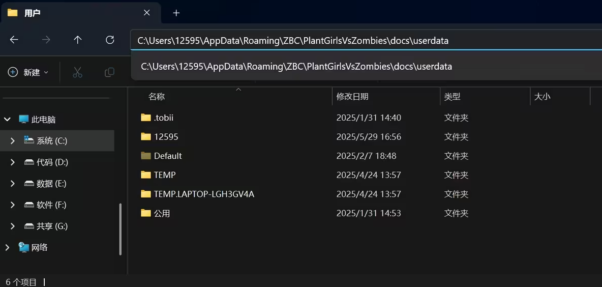C:Users【你的用户名】AppDataRoamingZBCPlantGirlsVsZombiesdocsuserdata