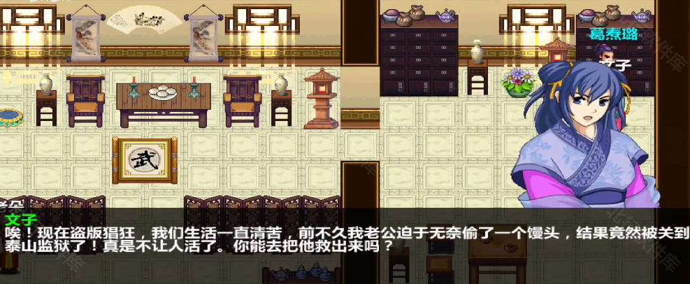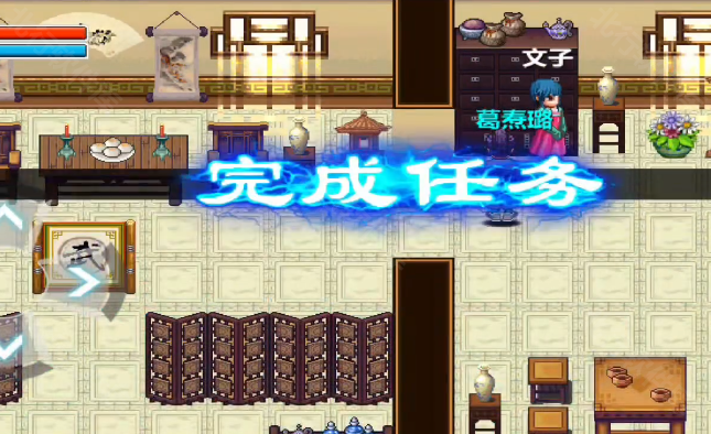 2、去右上角的房间找到【文子】接任务,让玩家帮忙寻找爬山失踪的【老朵】