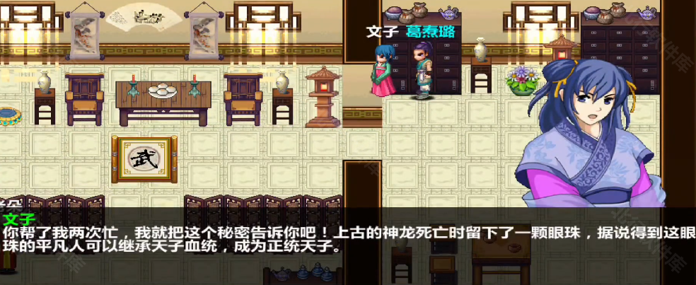 1、继续和文子对话,她会告诉我们有龙眼珠就可以自立为王