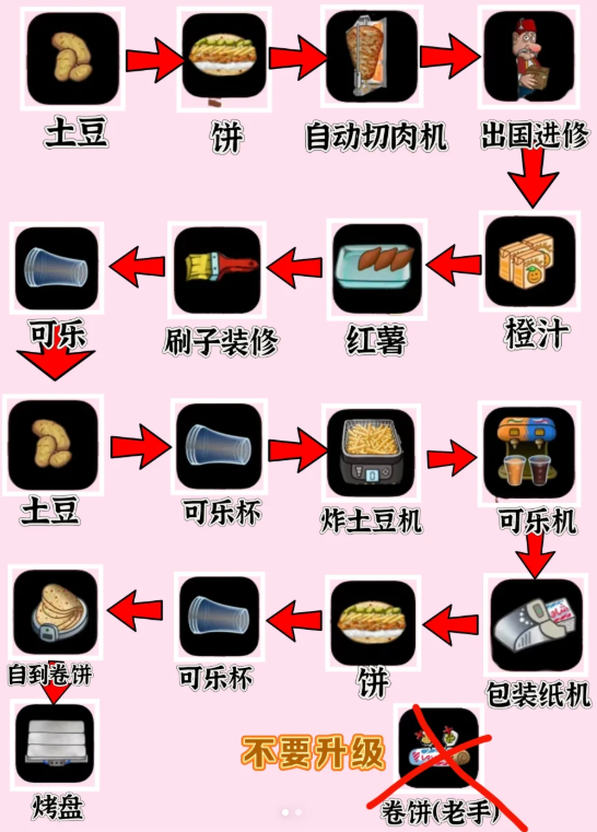 沙威玛传奇模拟了土耳其烤肉店的经营玩法,伴随着魔性的音乐,我们需要为顾客制作美味的沙威玛。利用经营收益可以升级店内的厨具,但升级也有一定的技巧,如果不考虑好顺序乱升级,很可能会适得其反。下面为大家推荐流程上比较舒适的升级顺序。