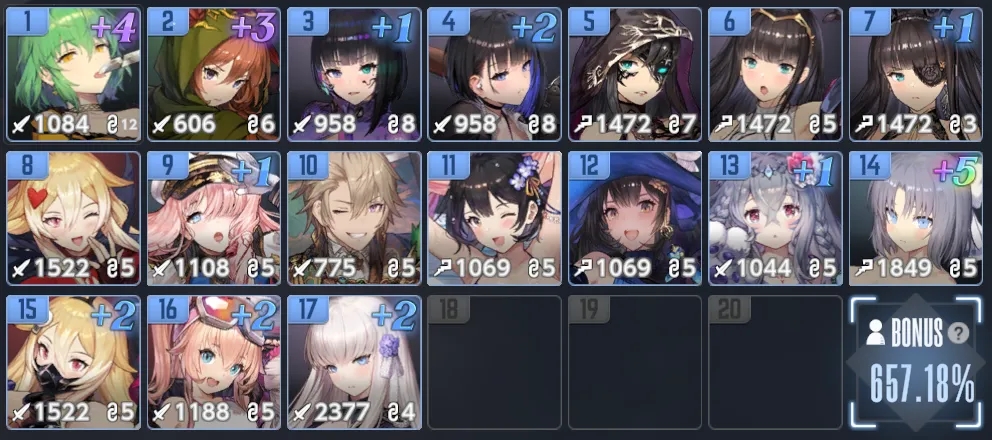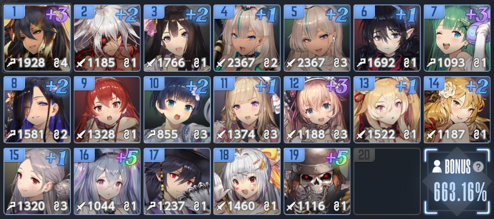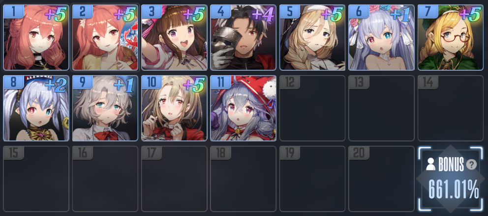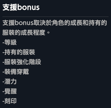 2、支援bonus。即使是不上场的服装也会有bonus加成,所以也要给他们升级、带上装备,像是魔兽商店兑换的装备SR建议也要买下来升满。