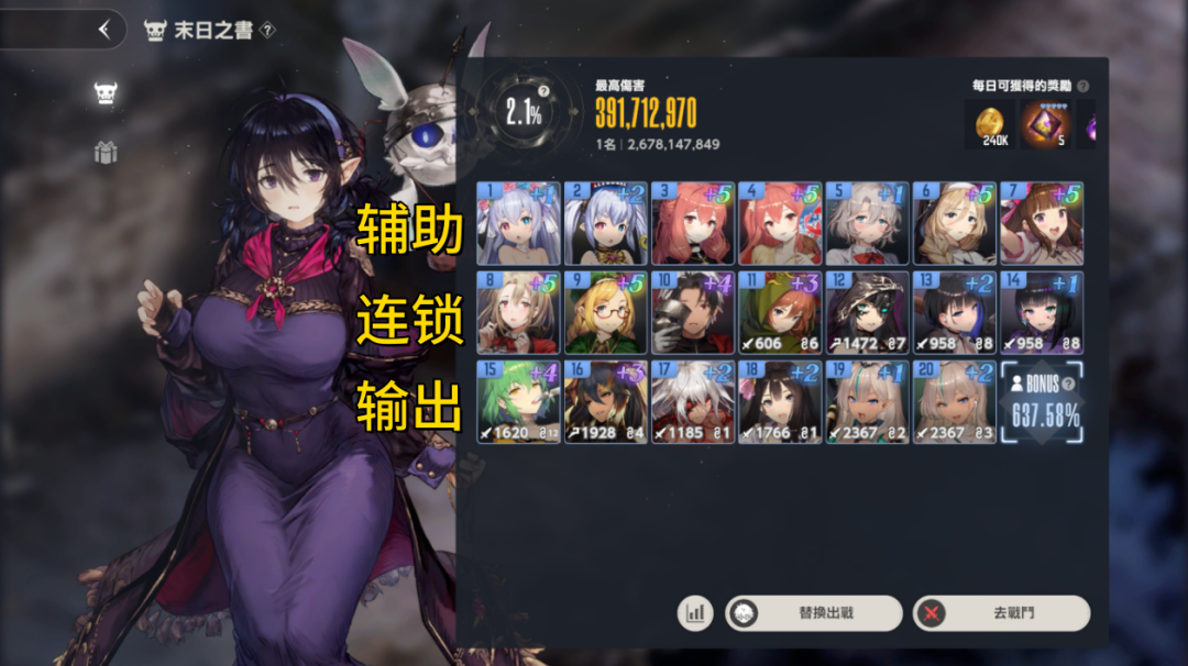 说明:末日之书取最高成绩发放奖励,不用每天打。目前的低保是1.1亿,打满奖励是3亿