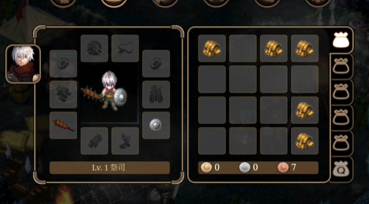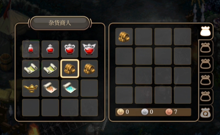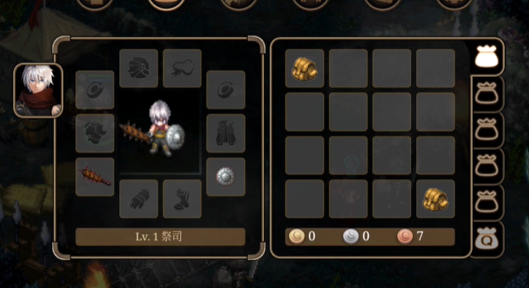 2、把A放到第一页右下角,注意此时第一个空位在整个背包的第一格;保存游戏,返回主菜单,进入游戏