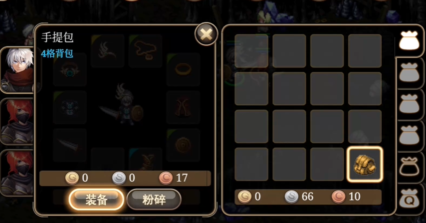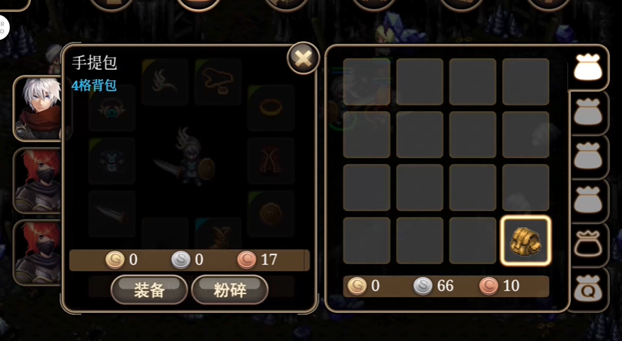 3、点击A,左手点【装备】的同时右手将A拖至任务背包,然后解除新出现的背包(如果还是只有一个背包的话就把它拖到右下角继续重复刚才的操作,这一步对手速有一定要求)