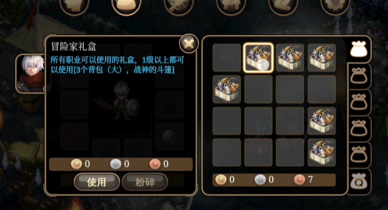 9、现在这些道具就可以随便用了,打开冒险家礼盒里面就有16格背包