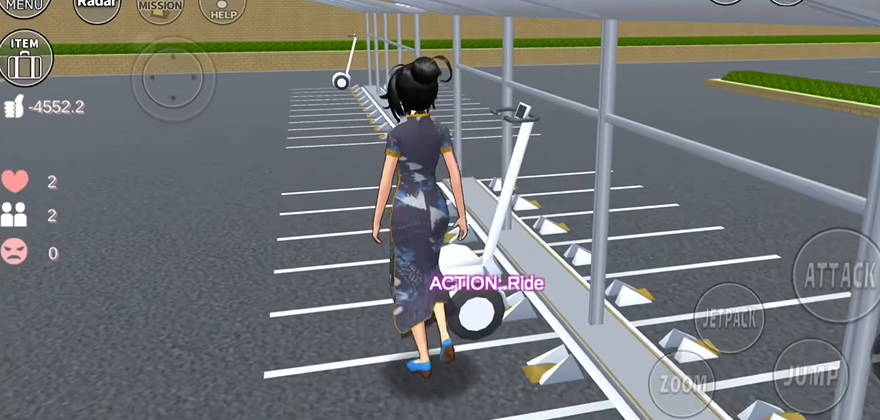 4、骑进去后点击ACTION我们会换一身衣服,然后从平衡车上下来