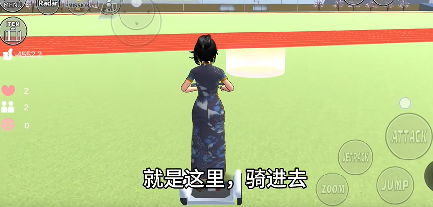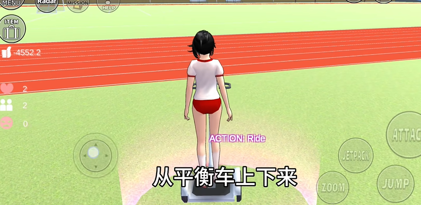 3、把平衡车骑到操场换衣服的地图,如下图所示的粉圈中
