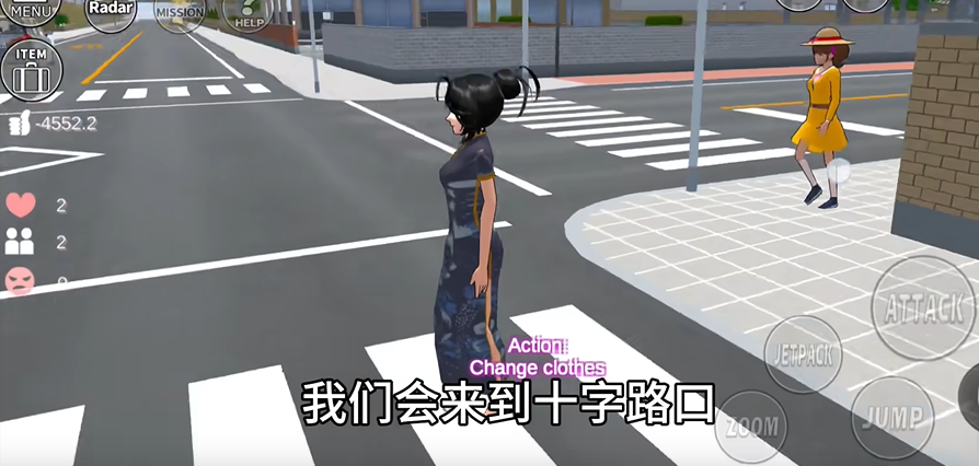 5、重新骑上平衡车,再点一下ACTION,会被传送到【十字路口】
