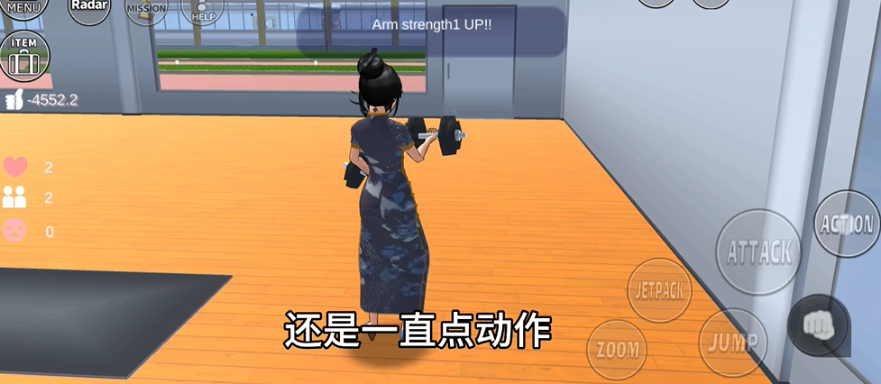 7、与训练项目互动,一直点ACTION,会发现我们的角色在刚刚的体操服之间来回切换,这里就是顺利卡好了BUG,可以打断动作前后摇,提升速度