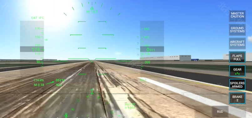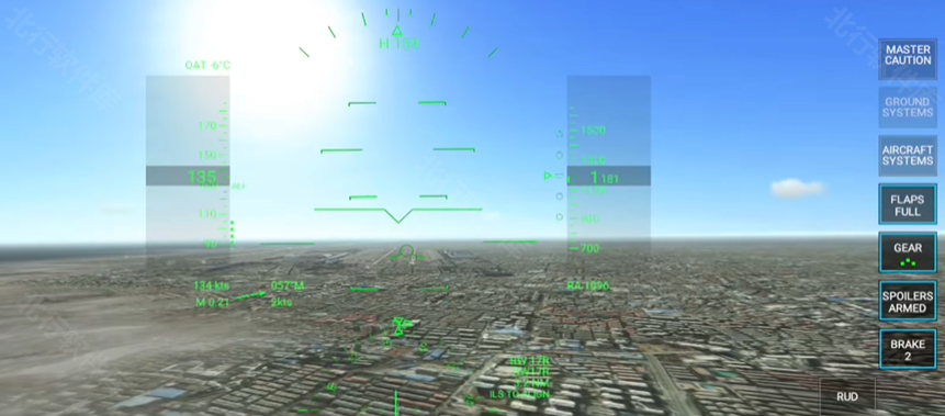 6、此时把HUD打开,视角调到机头视角,注意HUD里面有一个小圆点,这就是我们飞机待会要飞到的地方,要把小圆点对准跑道