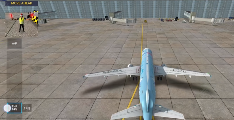 11、到停机位后我们把滑行灯关闭,可以看到指引车里面下来一个小人,根据上面的英文字母指示进行操作